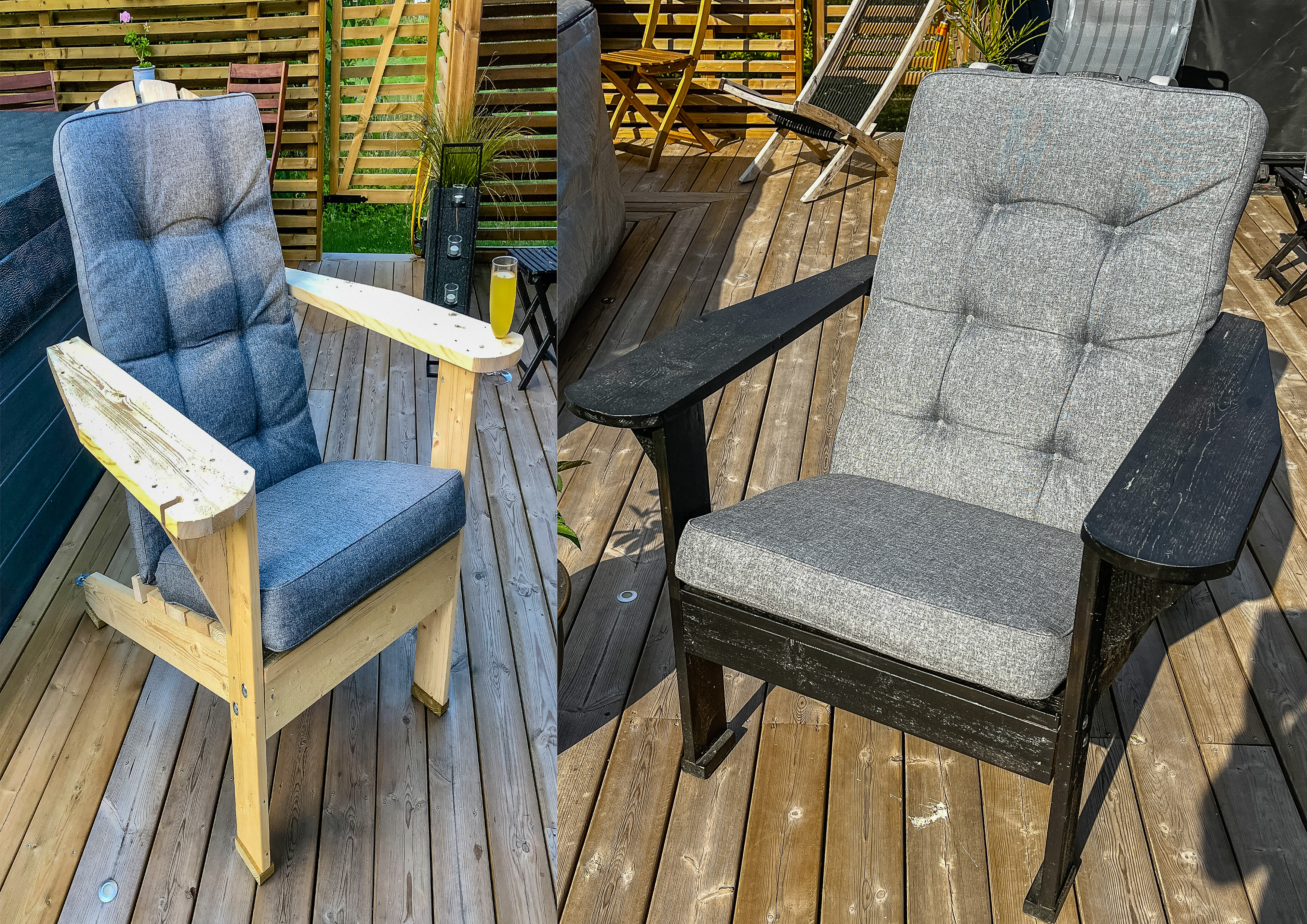 Pris: 2500 kr inkl. moms för Vuxenstolen och 1500 kr för Barnstolen (dynor på bilden ingår inte i leverans samt pris)